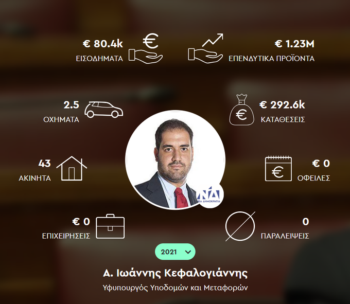 “Γεννήθηκε το 1982 στο Ρέθυμνο και είναι γιος του Αχιλλέα Κεφαλογιάννη, αδερφού και στενού συνεργάτη του πολιτικού Γιάννη Κεφαλογιάννη. Σπούδασε Νομική στο ΕΚΠΑ, με μεταπτυχιακό στη Νέα Υόρκη. Στα φοιτητικά του χρόνια έγινε υπεύθυνος πολιτικού σχεδιασμού της ΔΑΠ-ΝΔΦΚ. Εργάστηκε στο Συμβούλιο Ασφαλείας του ΟΗΕ και στη συνέχεια ως συνεργάτης στο δικηγορικό γραφείο του Αλέξανδρου Λυκουρέζου. Το 2012 εξελέγη για πρώτη φορά βουλευτής Ν.Δ. και το 2019-2021 ήταν υφυπουργός Μεταφορών. Το 2023 διορίστηκε υφυπουργός Εθνικής Άμυνας και από τον Μάρτιο του 2025 είναι υπουργός Κλιματικής Κρίσης και Πολιτικής Προστασίας” (“Ο ανύπαρκτος υπουργός ζητά τώρα και τα ρέστα”, https://www.antinews.gr/154009/politiki/o-anyparktos-ypoyrgos-zita-tora-kai-ta-resta/).